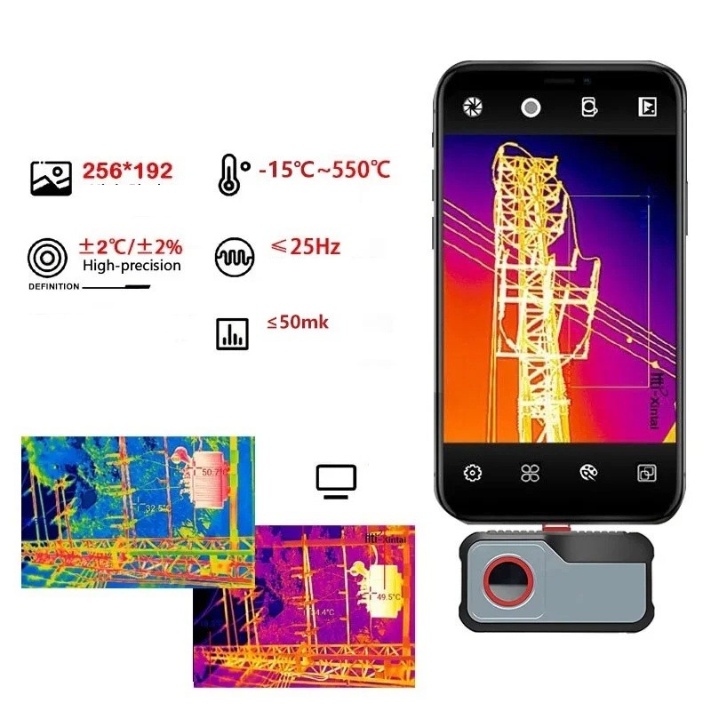 Câmara térmica infravermelha HT-203U para telemóveis Android com resolução 256x192 e intervalo de temperatura até 550 °C
