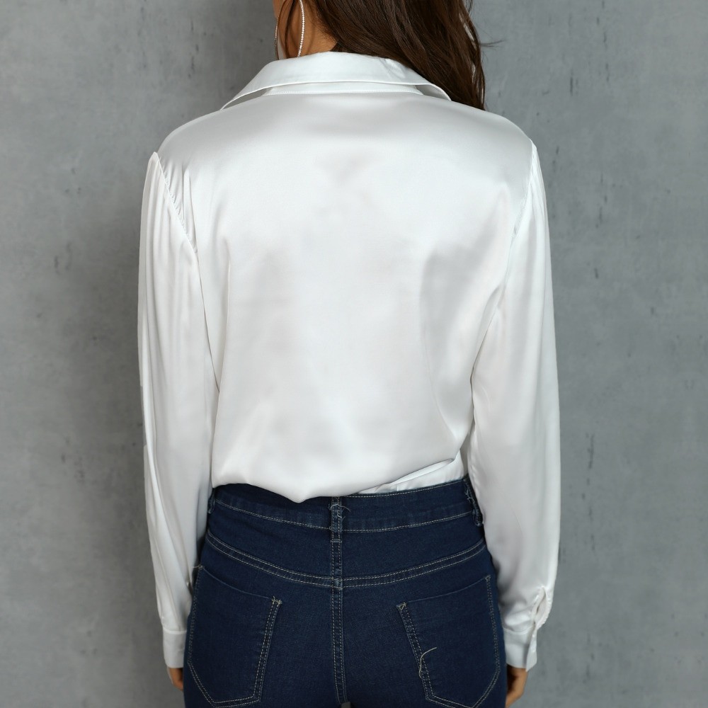 Camisa muito agradável. Tem mangas longas e uma cor branca clássica.