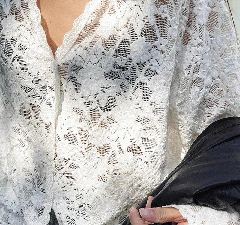 • Conteúdo da embalagem: 1× camisa de renda para senhora com decote em V