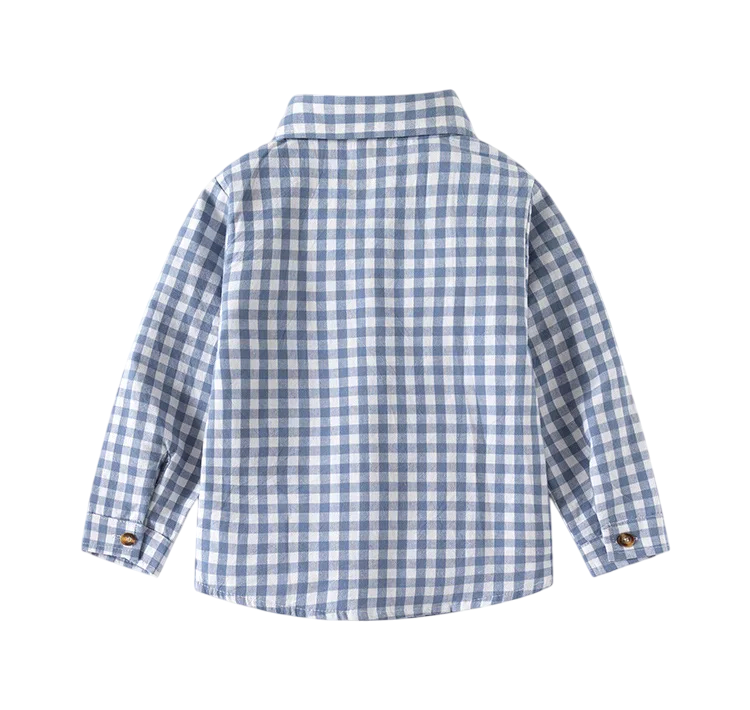 Camisa de xadrez para crianças com colarinho Camisa de algodão com mangas longas para rapazes Bebé Top casual com botões Várias cores