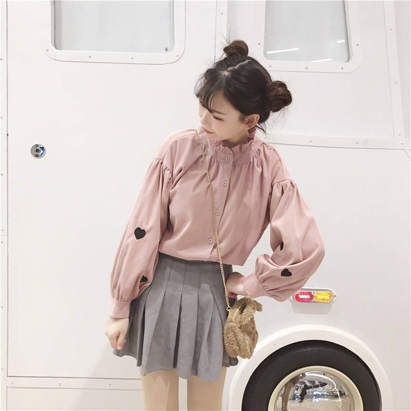 Camisa feminina larga com corações