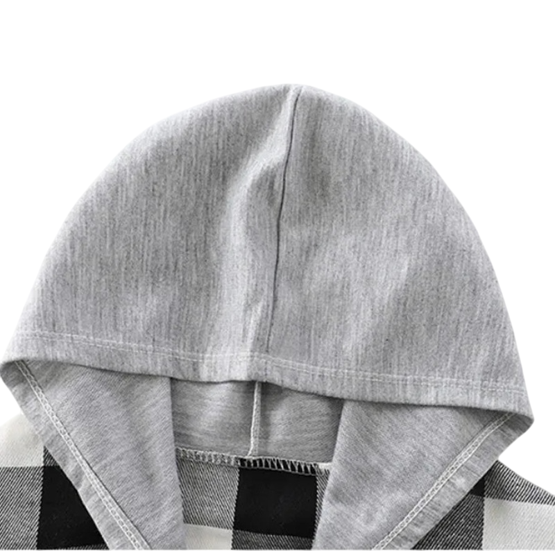 • Camisa xadrez infantil estilosa com capuz para primavera e outono
