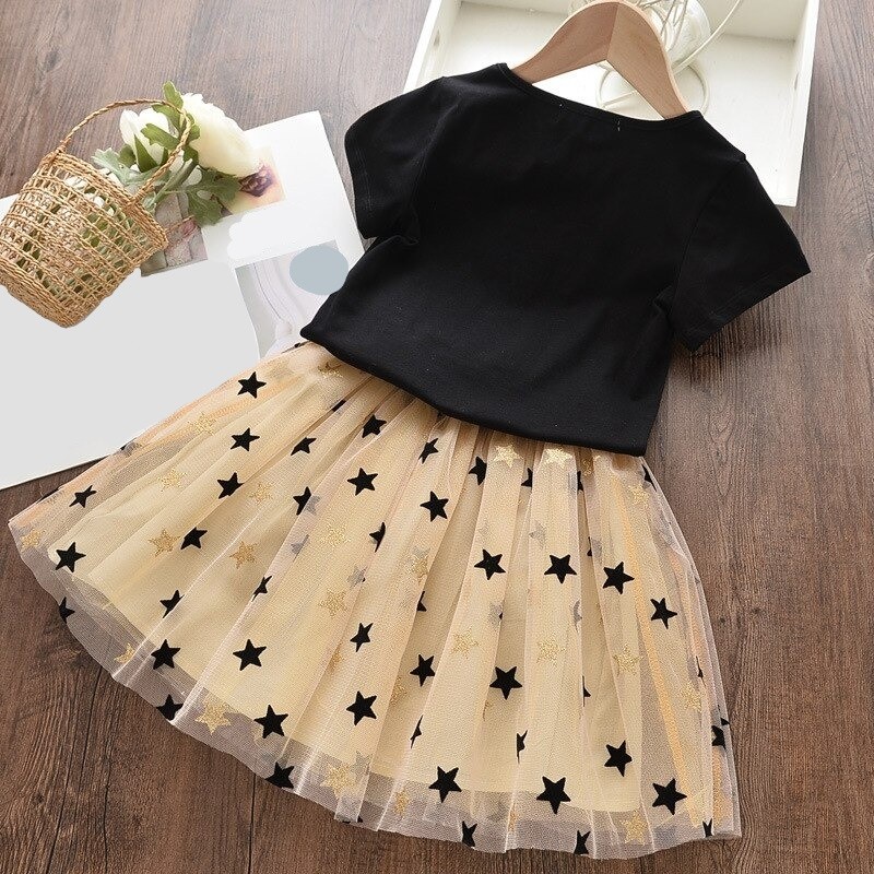 Camiseta de menina com cisne e saia