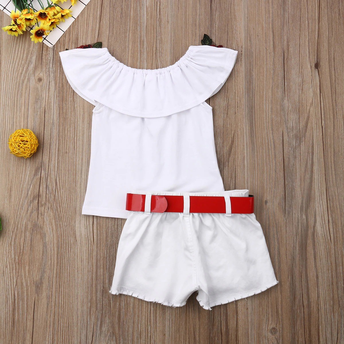 Camiseta de rapariga com rosas e calções