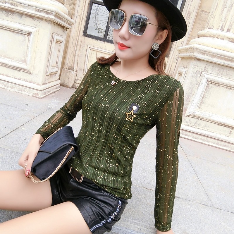 Camisola brilhante de mulher com mangas compridas