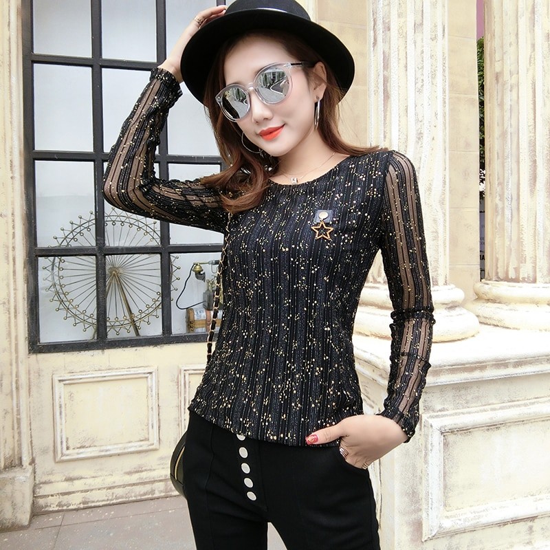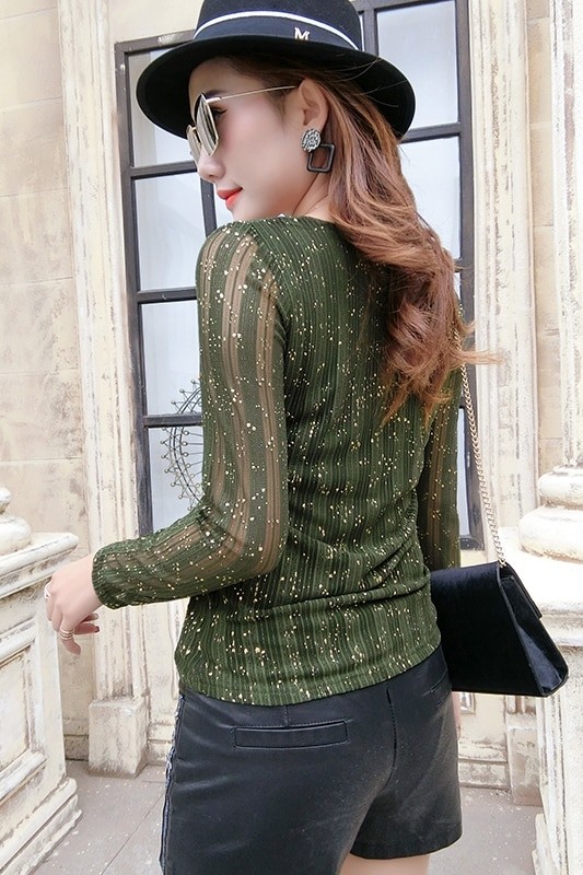 Camisola brilhante de mulher com mangas compridas B291