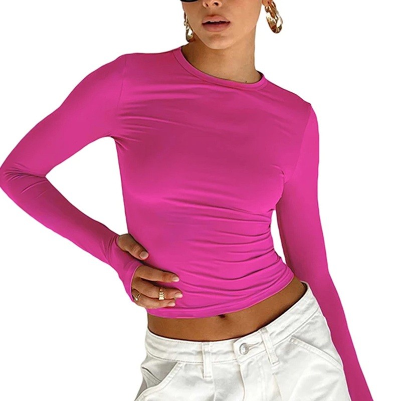 Página inicial Página inicial Roupa e acessórios Roupa de mulher T-shirts e tops de mulher T-shirts e tops de manga comprida de mulher Camisola de mulher de manga longa Top elástico justo até à cintura Roupa de moda para o tempo livre Camisola elegante para looks do dia-a-dia
