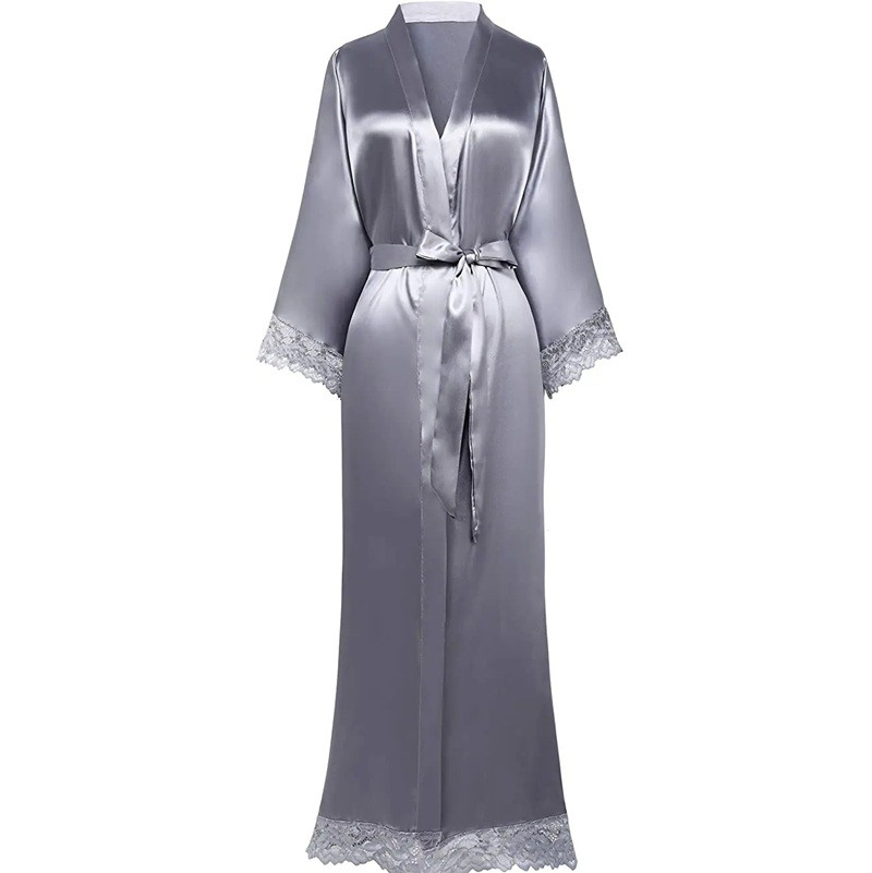 Camisola de senhora com renda Camisola leve e elegante com brilho sedoso Laço com cordão Camisola luxuosa e confortável em poliéster suave