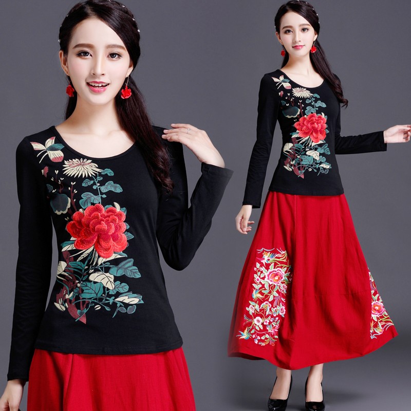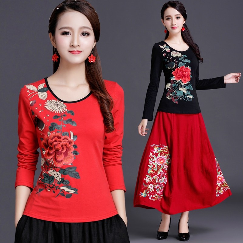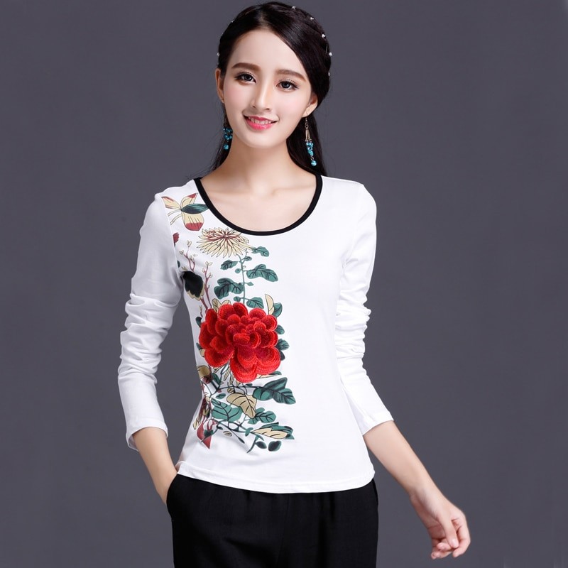 Camisola feminina de flores com mangas longas