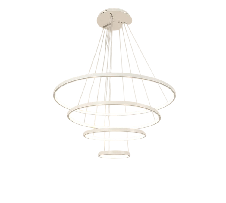 Este candeeiro LED suspenso moderno traz uma combinação de design luxuoso, alta luminosidade e configuração variável. É composto por quatro anéis LED de diferentes diâmetros (80-60-40-20 cm), que podem ser ajustados ao seu gosto – podem ser suspensos horizontalmente em um plano ou dispostos de forma variada para um aspeto dinâmico. Graças à potência de 100W e fluxo luminoso de 249-2000 lm proporciona iluminação suficiente para espaços de 20-30 m², tornando-o ideal para salas de estar, salas de jantar, escritórios modernos ou espaços comerciais. Luz branca quente (3000K) cria uma atmosfera agradável, que realça a estética do interior. Tensão de 90-260V assegura uma ampla compatibilidade com diferentes redes elétricas.