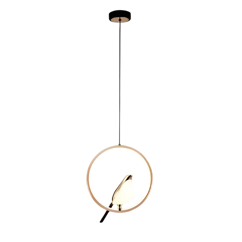 • Candeeiro LED suspenso com bidé circular e pássaro decorativo