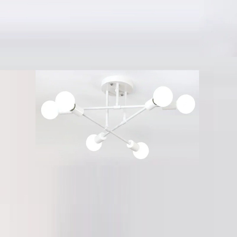 Candeeiro estiloso com forma ajustável e seis fontes de luz para uma iluminação eficaz dos espaços. Estrutura metálica, soquete E27, design moderno. Descrição completa