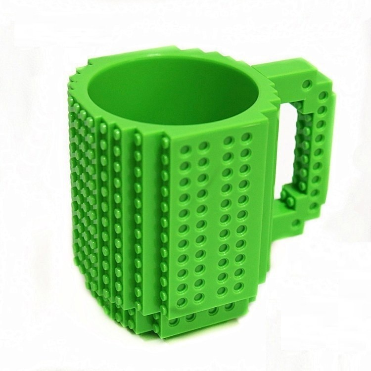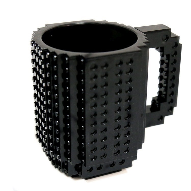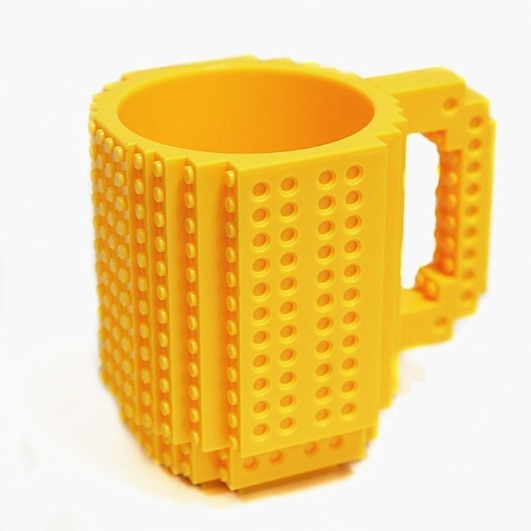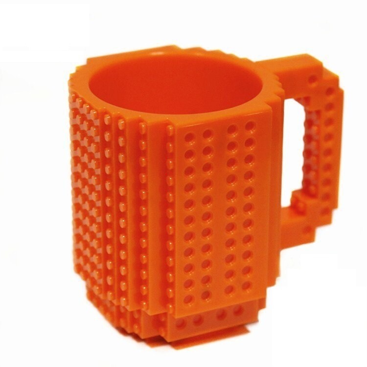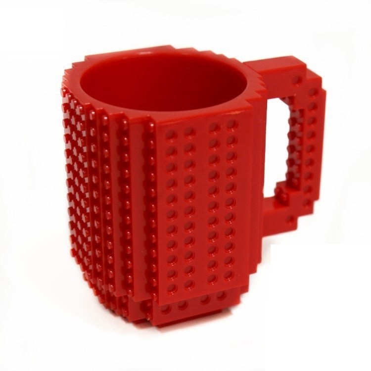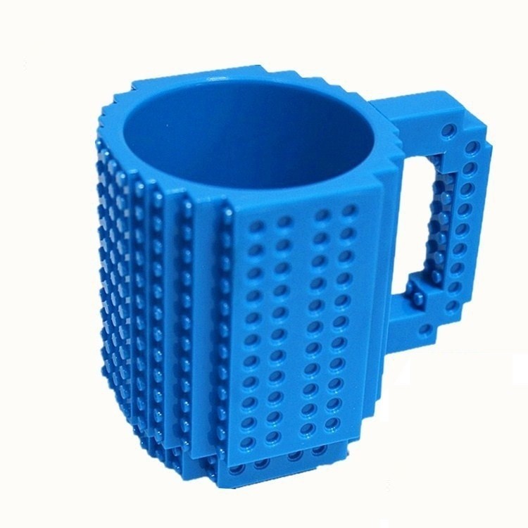Na caneca podem ser fixados blocos de lego.