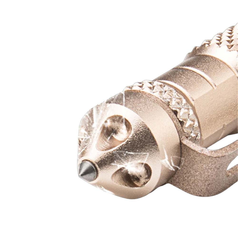 Esta caneta táctico é útil em caso de acidente automóvel ou para defesa pessoal. No final da caneta existe uma coroa com ponta, que permite partir vidro facilmente. O cabo estriado garante uma pegada segura.