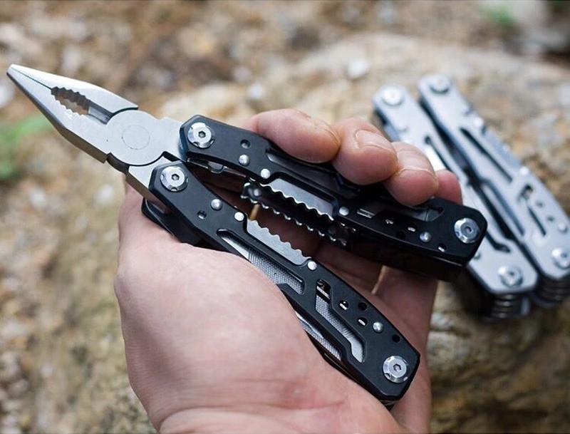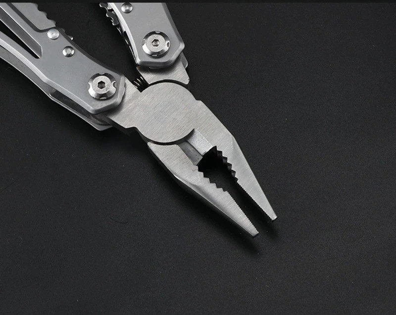 Lâmina em aço inoxidável de qualidade. 14 funções: alicates, abridor de latas, chave de fenda Phillips, etc. Descrição completa