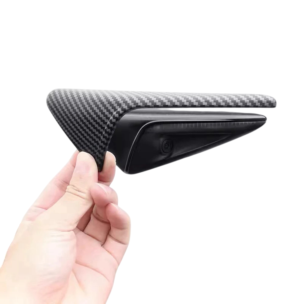 Capa resistente em ABS com design em fibra de carbono mate que protege as câmaras das luzes de direção da Tesla contra riscos e sujidade, acrescentando estilo ao veículo. Descrição completa