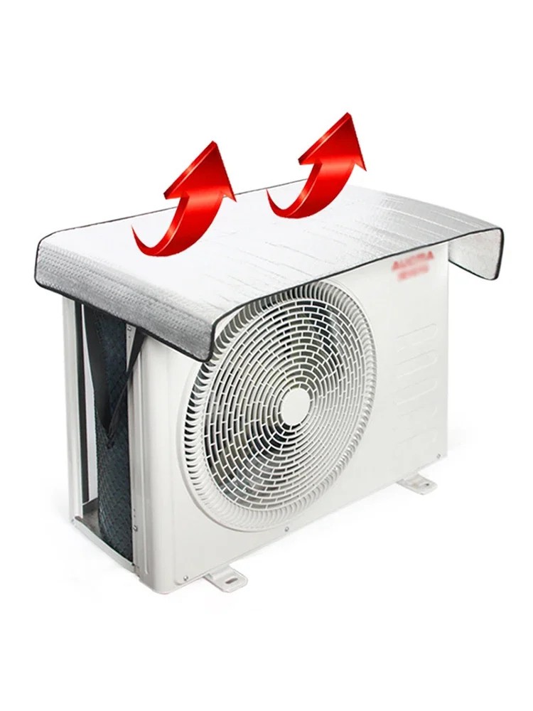 Capa à prova de água para exterior que protege a unidade de ar condicionado da chuva, neve, sol e poeira. A superfície isolante e as correias resistentes garantem uma fixação segura. Descrição completa