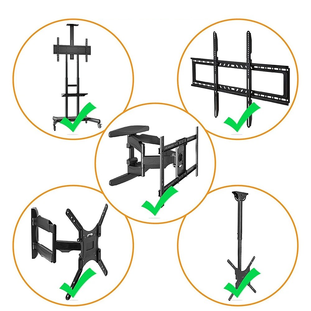 - Uso universal para suportes fixos, extensíveis, inclináveis e de teto, bem como suportes móveis
