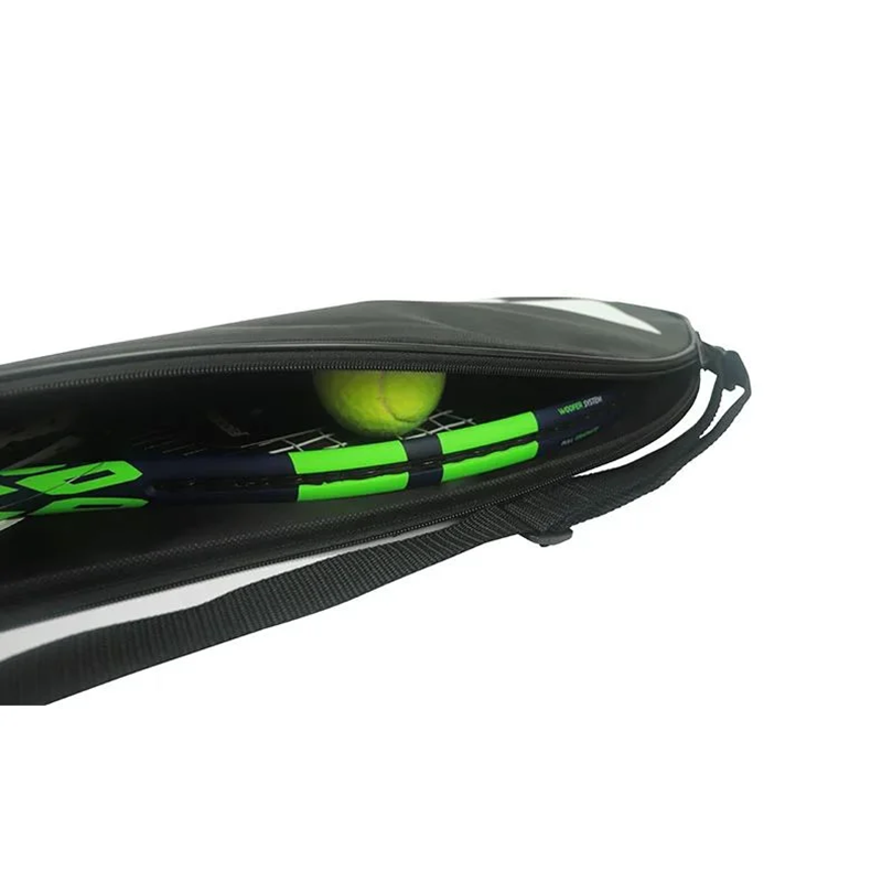 A capa oferece tudo o que precisa para proteger e transportar facilmente a sua raquete de ténis. É leve, prática e, graças à sua qualidade de construção, é adequada para uso diário. Com o material resistente, a sua raquete permanecerá em perfeito estado mesmo com transporte frequente. Este estojo será apreciado tanto por iniciantes como por jogadores avançados que desejam ter o seu equipamento desportivo sempre à mão. Com um design simples e características práticas, tornará-se uma parte essencial de qualquer equipamento de ténis.
