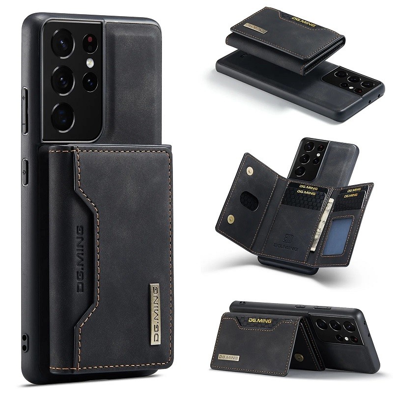 Capa protetora em pele com bolsa magnética para cartões para Samsung Galaxy S23 Plus