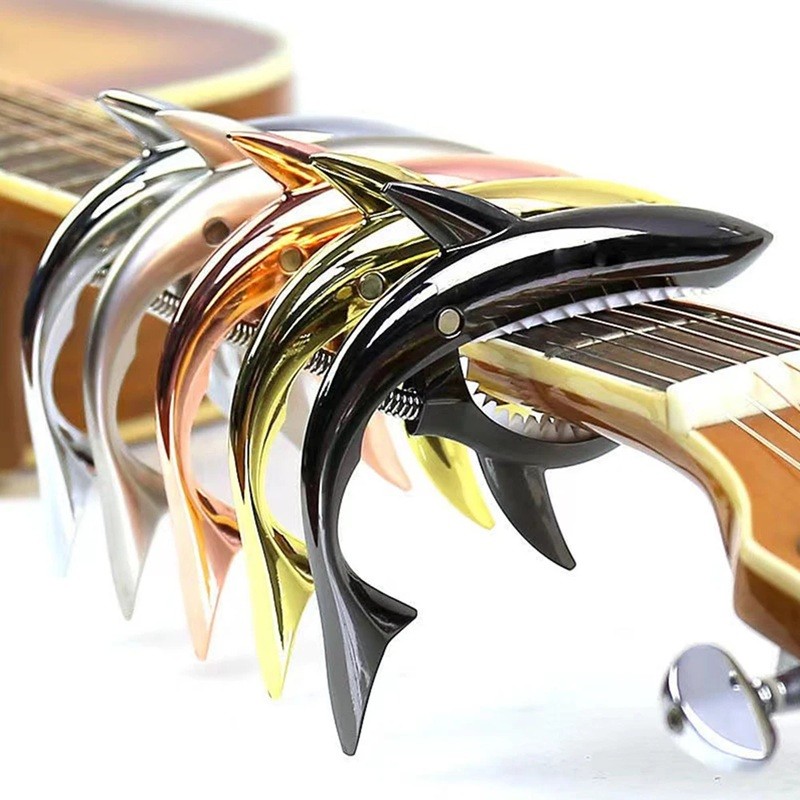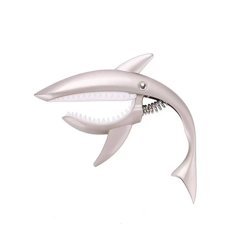 Capotraste em forma de tubarão 11x10,8 cm Liga de zinco Revestimento galvanizado Cores neutras com saco de armazenamento para guitarra acústica e elétrica