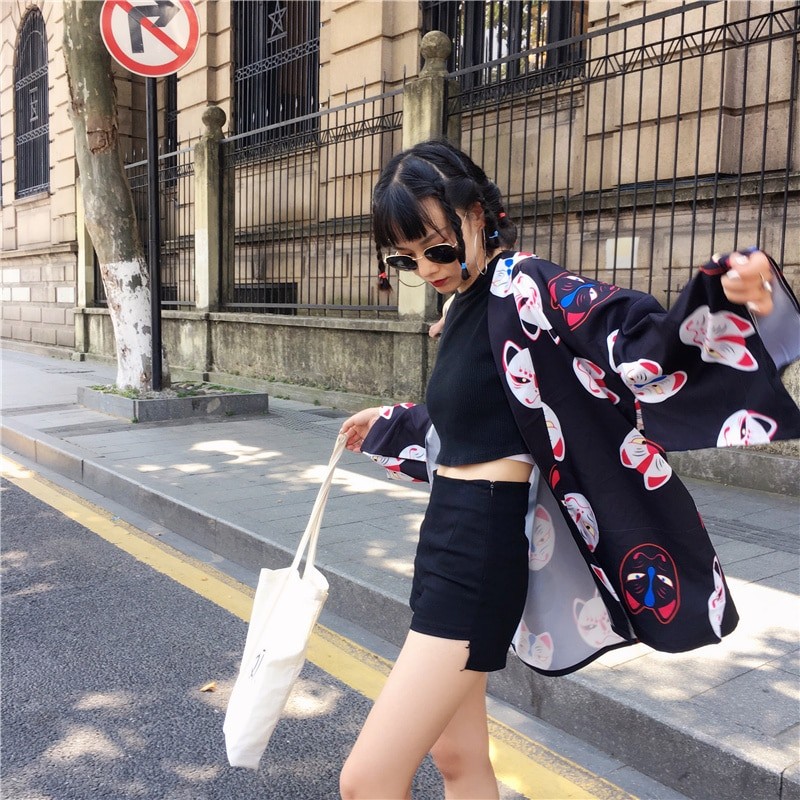 Cardigan feminino com estampado de gatos
