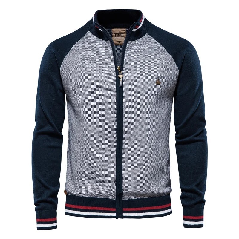 Cárdigan masculino de manga longa Suéter de algodão com elastano com fecho éclair Suéter moderno para o trabalho e lazer Várias cores