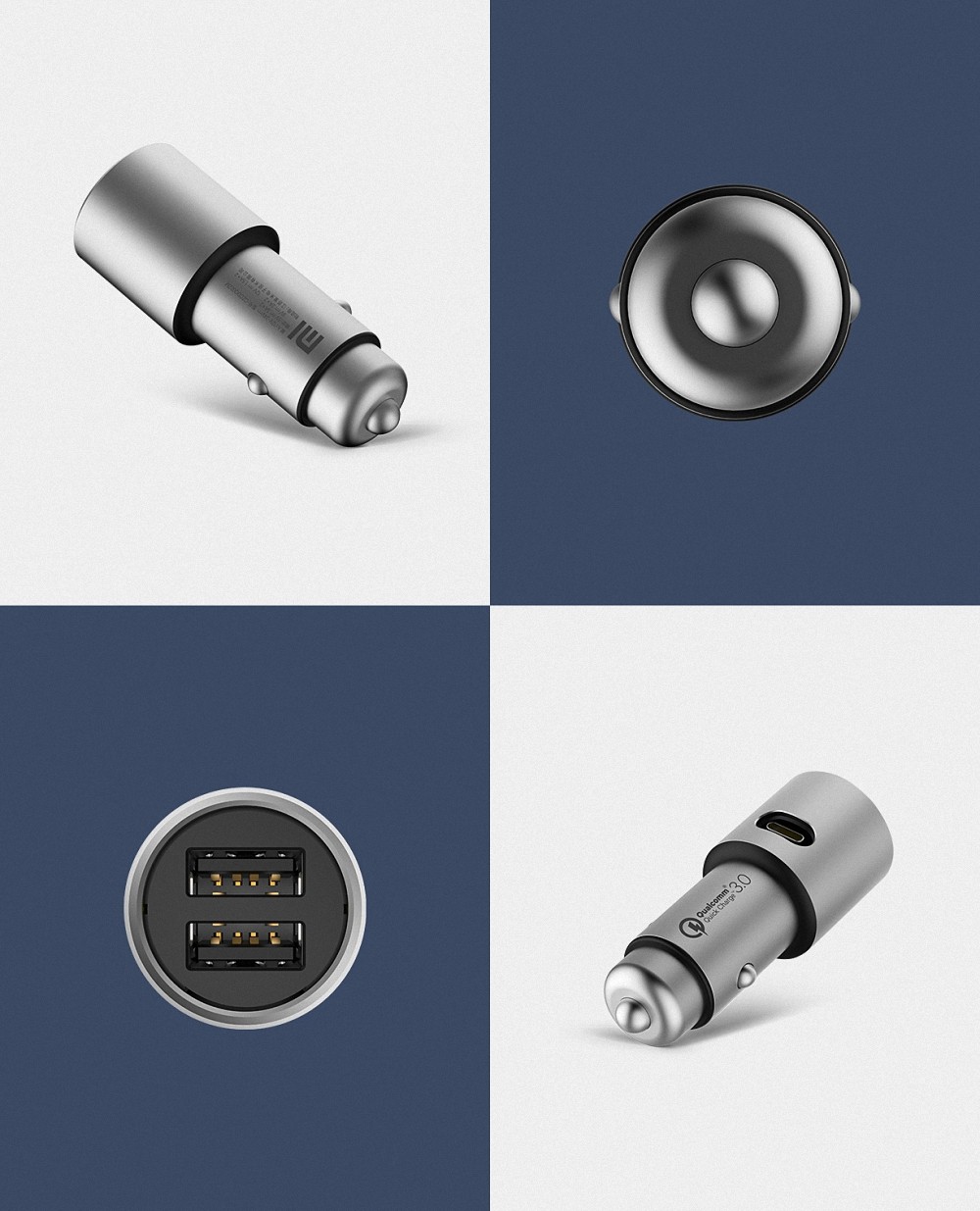 O carregador tem entradas para vários dispositivos tipo C, IOS para iPhone e micro USB.