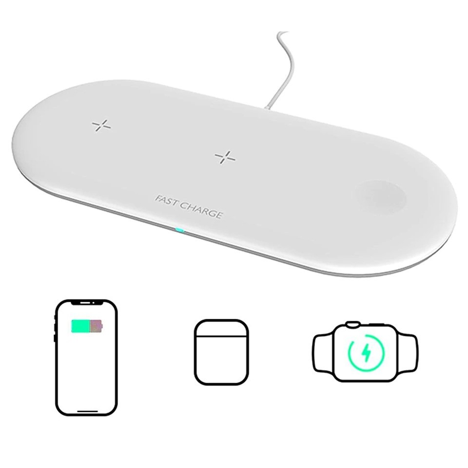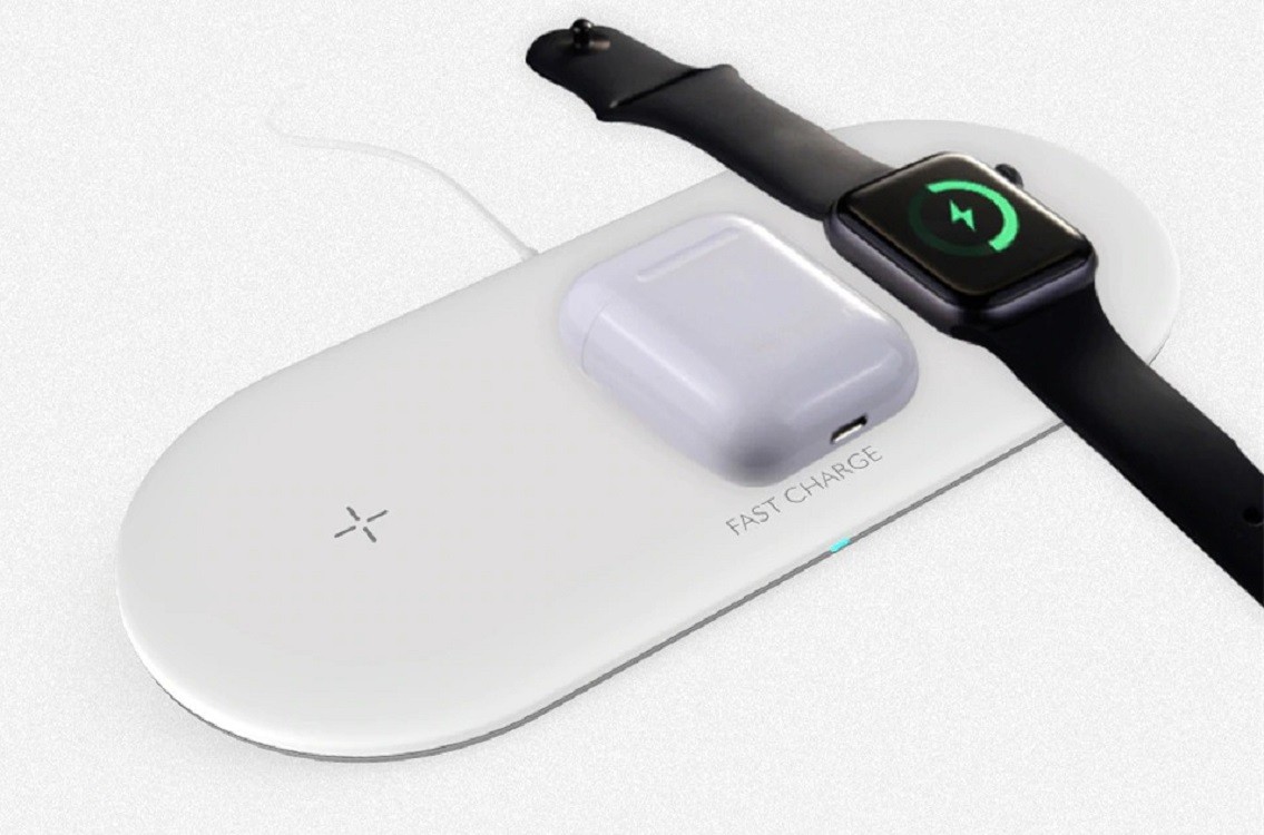 Permite carregar um telefone com suporte para carregamento sem fios, iWatch e Airpods.