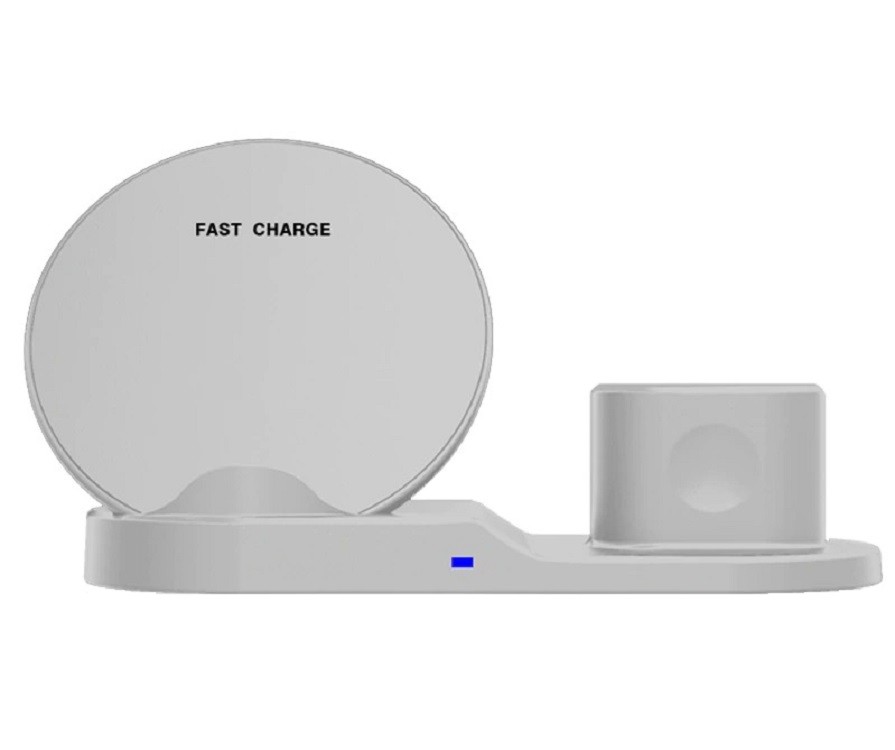 Permite carregar telefones com suporte para carregamento sem fios, Airpods e Apple Watch.