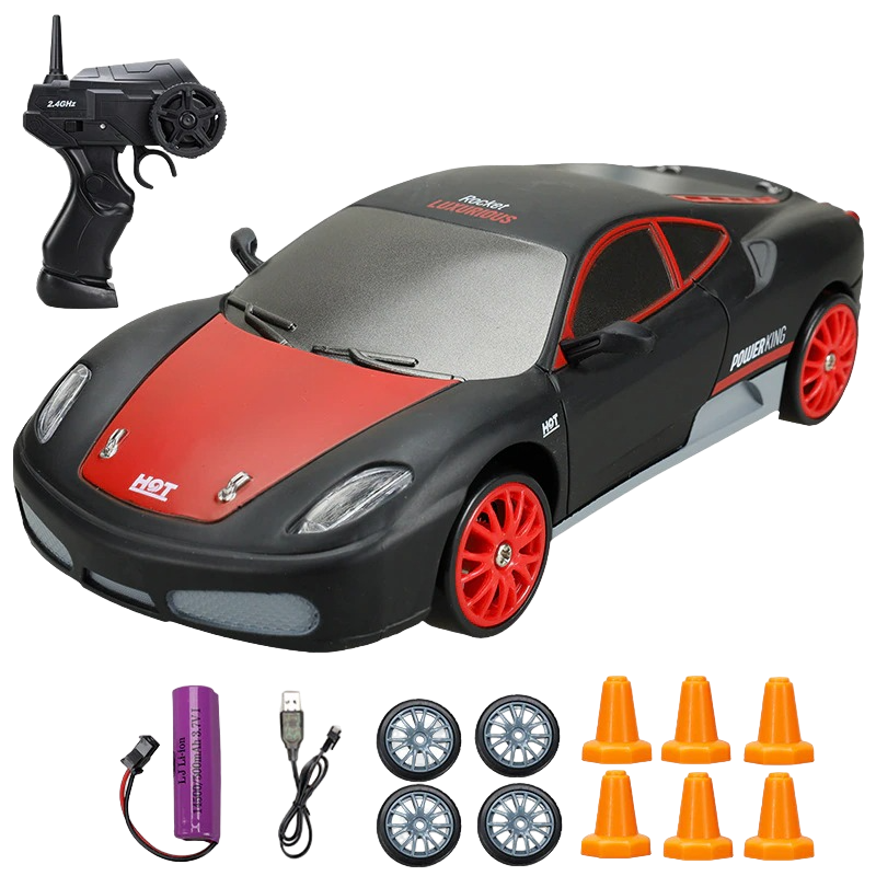 O carro de corrida RC é a máquina de corrida perfeita para os amantes da velocidade! Este carro potente atinge velocidades de até 28 km/h, tornando-o ideal para corridas emocionantes. Com um alcance de transmissão de 80 m, pode competir com amigos ou familiares sem receios de perder o controlo. E com 6 cones incluídos, pode montar a sua própria pista e viver uma experiência de corrida perfeita. Acelere e prepare-se para uma grande diversão!