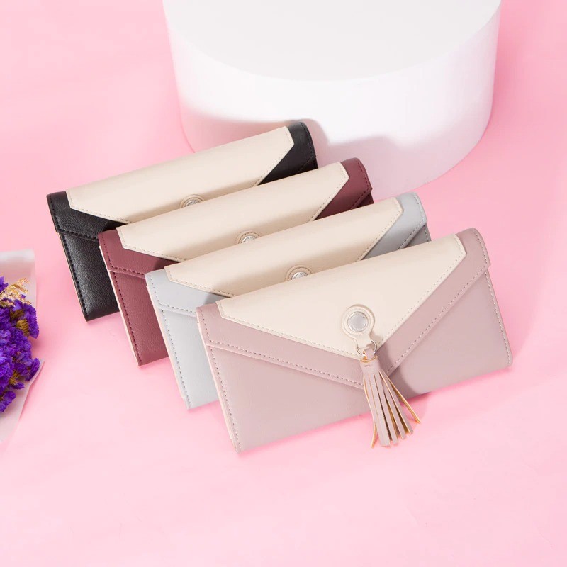 Carteira de pele feminina com pompom M190