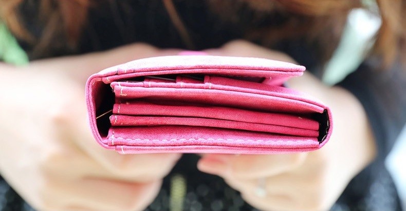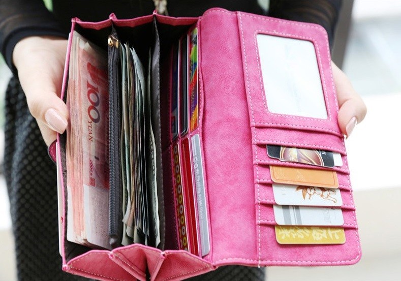 A carteira oferece espaço suficiente para cartões e grandes compartimentos para notas.