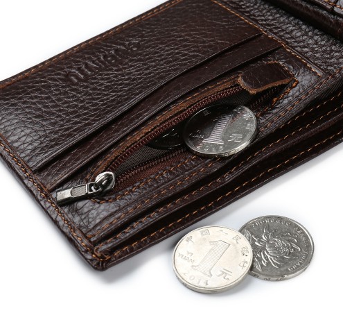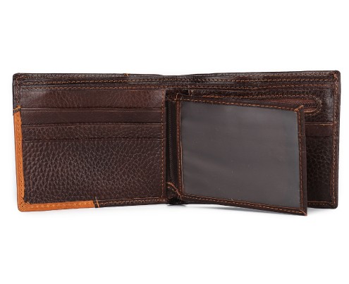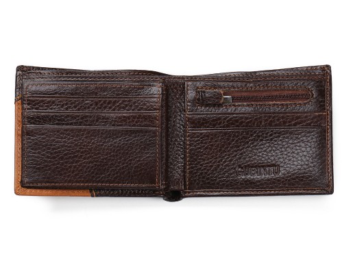 Esta carteira masculina de qualidade em couro sintético tem espaço suficiente para tudo o que precisa.