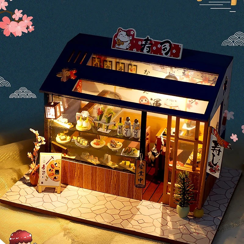 Casa de Bonecas 21 x 15 x 15 cm Mini Conjunto de Construção Sem Tampa com Iluminação LED Mobiliário e Instruções Modelo Decorativo DIY de Interior