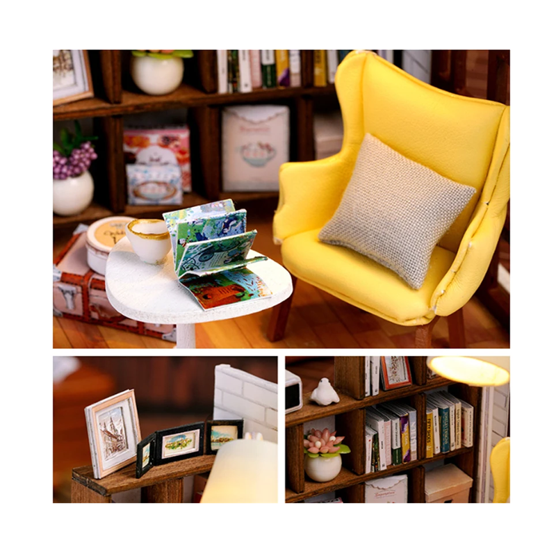 Casa de Bonecas de Madeira 11,5 x 9 x 9 cm Miniatura DIY Kit de Construção Puzzle 3D com Mobiliário e Tampa Feito à Mão Decoração Presente para Crianças