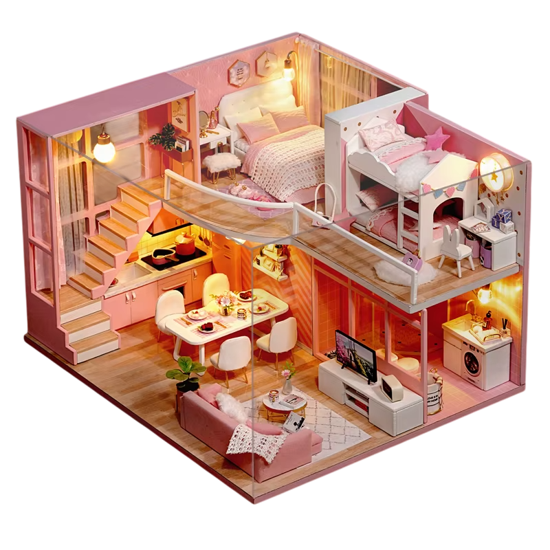 Esta miniatura montável à mão detalhadamente elaborada oferece não só diversão na criação, mas também uma linda decoração para o interior. A casa é feita de madeira de qualidade e contém um conjunto completo de móveis e acessórios que criam uma atmosfera autêntica. A tampa transparente protege a obra final do pó e danos, enquanto a iluminação LED adiciona uma atmosfera mágica. O conjunto é ideal para todos os amantes de projetos DIY que desejam criar o seu próprio mundo em miniatura.