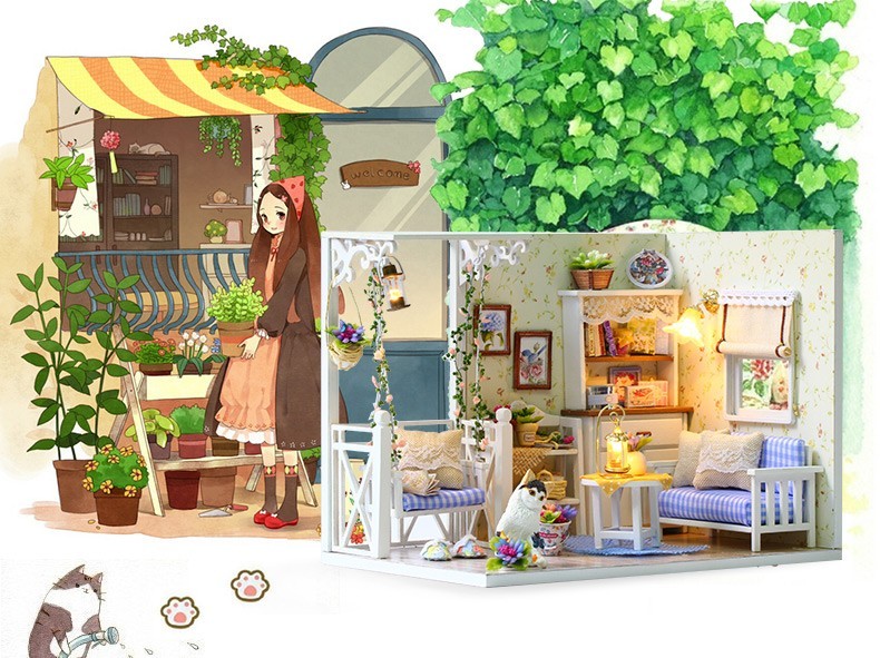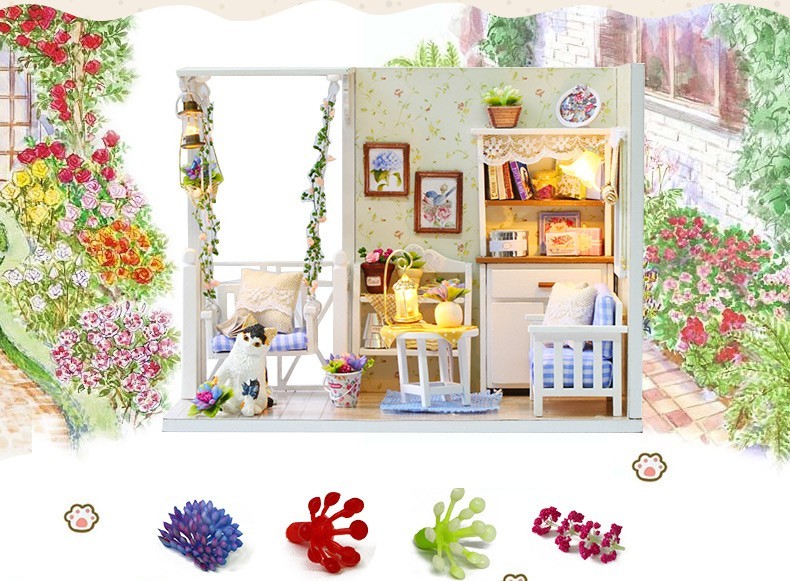 Conteúdo da embalagem: 1x Mobiliário tal como na imagem (desmontado), luz LED, bonecas de gato, capa para pó