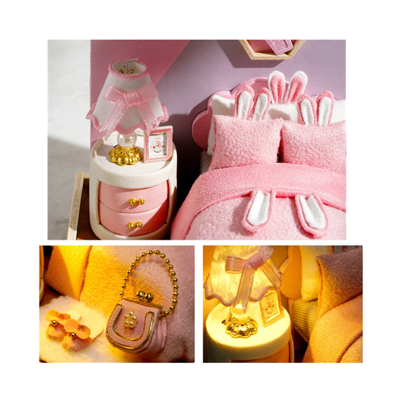 Este original kit DIY irá encantar todos os amantes de miniaturas, criação e decorações de design. A casa tem dimensões compactas de 11,5 x 9 x 9 cm e é composta por peças detalhadamente trabalhadas, que se montam facilmente sem cola. Inclui também um conjunto de móveis e acessórios em miniatura, que conferem ao modelo um aspeto acolhedor e realista. A cobertura transparente de plástico protege o modelo acabado do pó e ao mesmo tempo torna-o uma decoração atrativa. Kit de construção 3D montável à mão desenvolve a motricidade fina, a concentração e a imaginação.