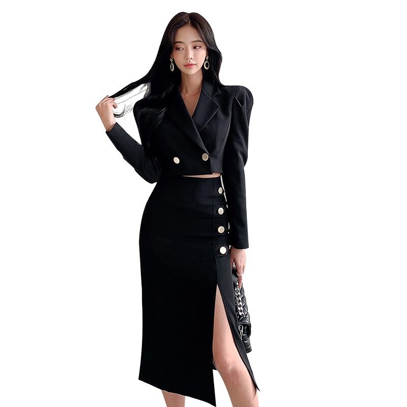 Casaco curto e saia para senhora