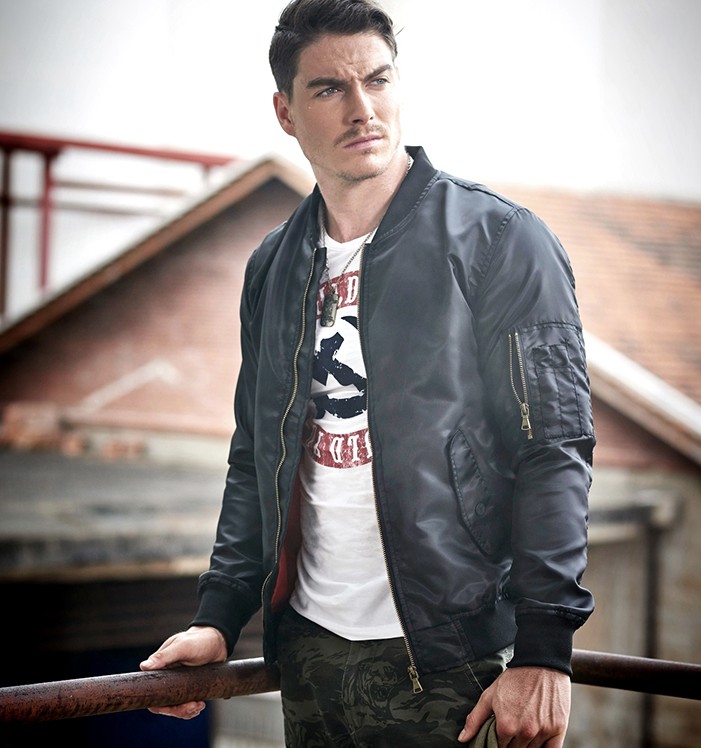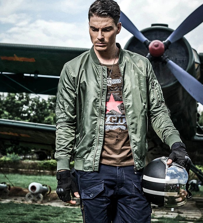 Vista-se com este casaco de aviador e seja o centro das atenções.