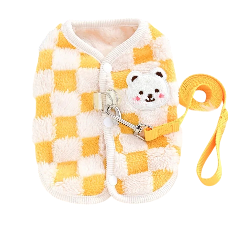 Casaco de botões em pelúcia xadrez com fivela para gatos 2 - 3 kg Casaco de inverno quente Corte confortável Roupa fofa para gatos Material aquecido