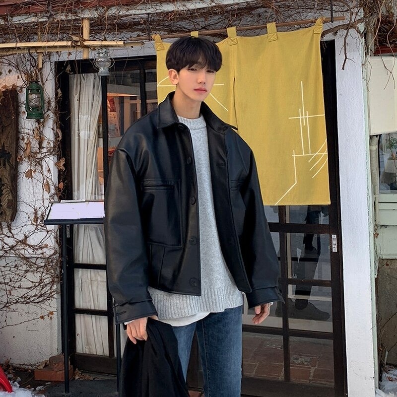 Casaco de couro masculino