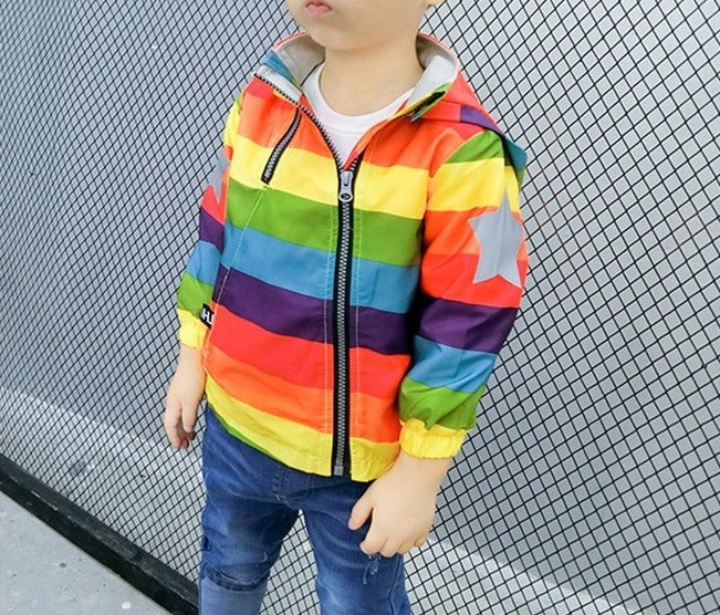 Este lindo casaco de vento moderno com fecho de correr inclinado ficará bem em qualquer criança pequena.