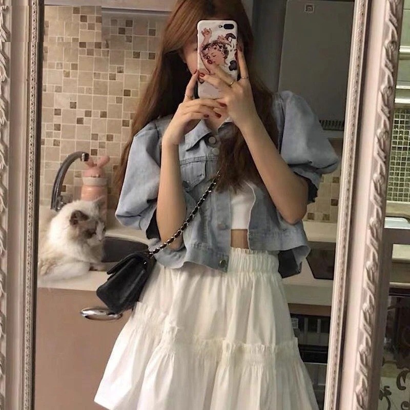Casaco de ganga curta para senhora P1678