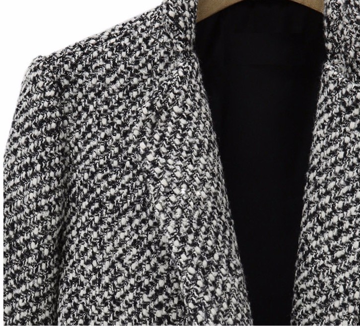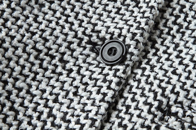 O casaco é de lã e é da cor cinza.