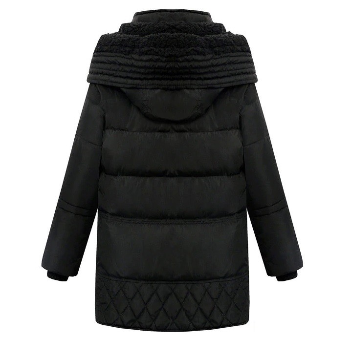 Com este casaco de senhora com penas de pato e imitação de lã de ovelha, vai sentir-se quente no inverno.