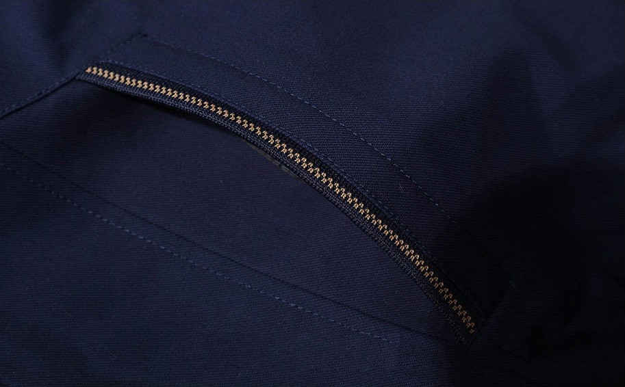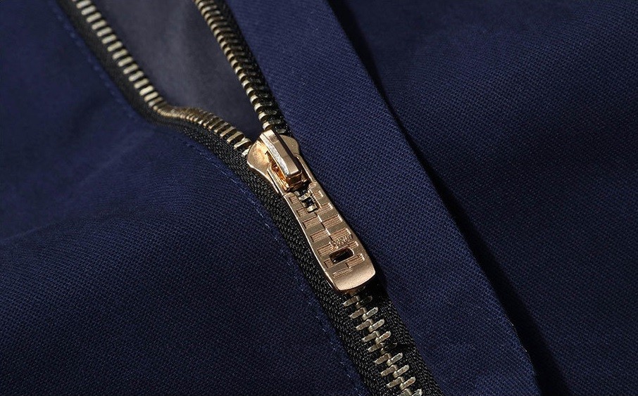 O casaco tem fecho com zip.