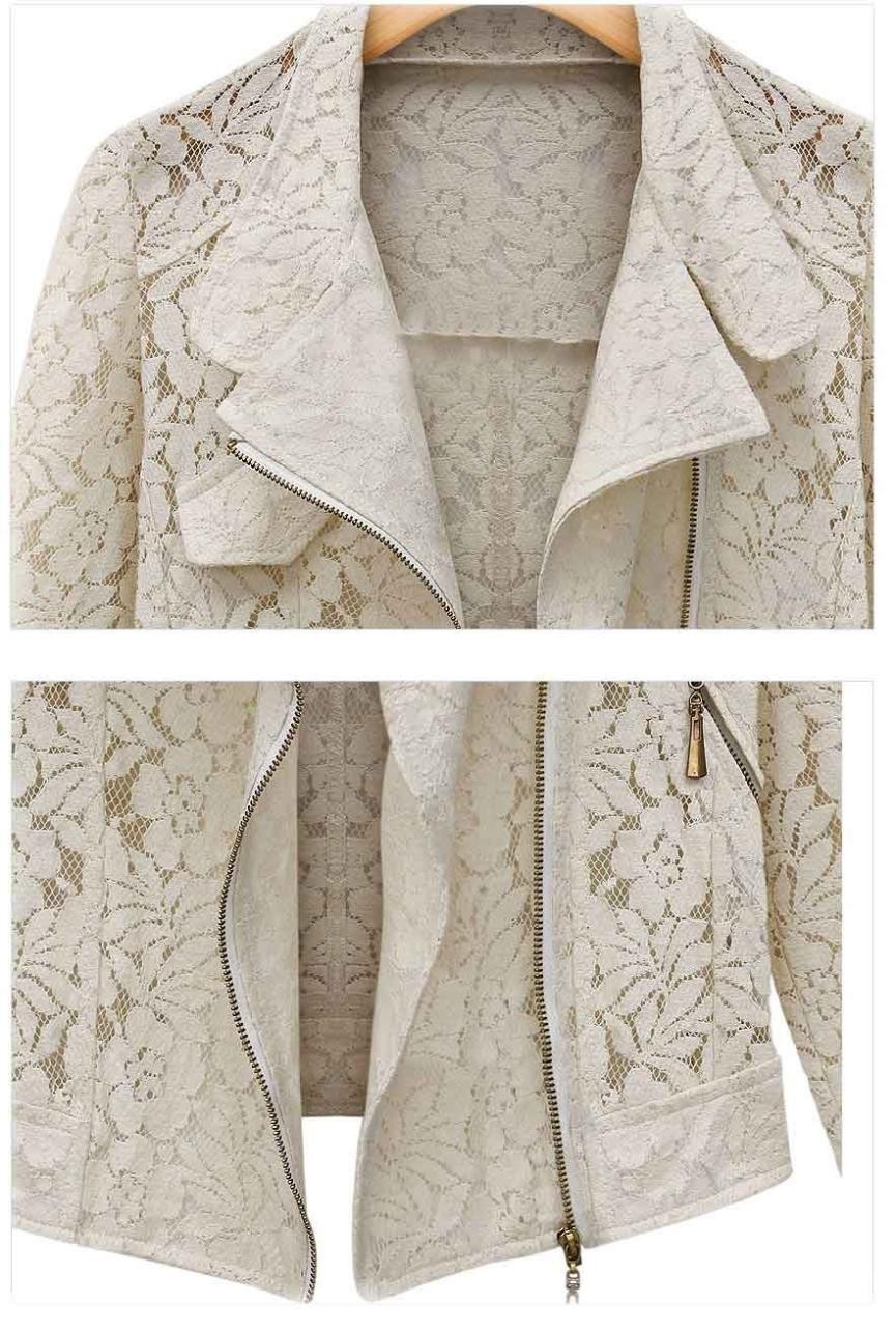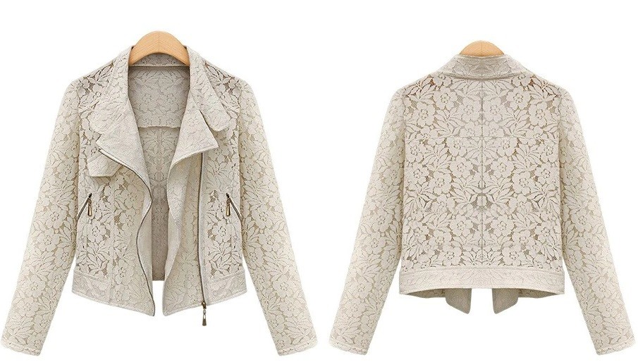 Com este elegante casaco de renda, estará realmente na moda.