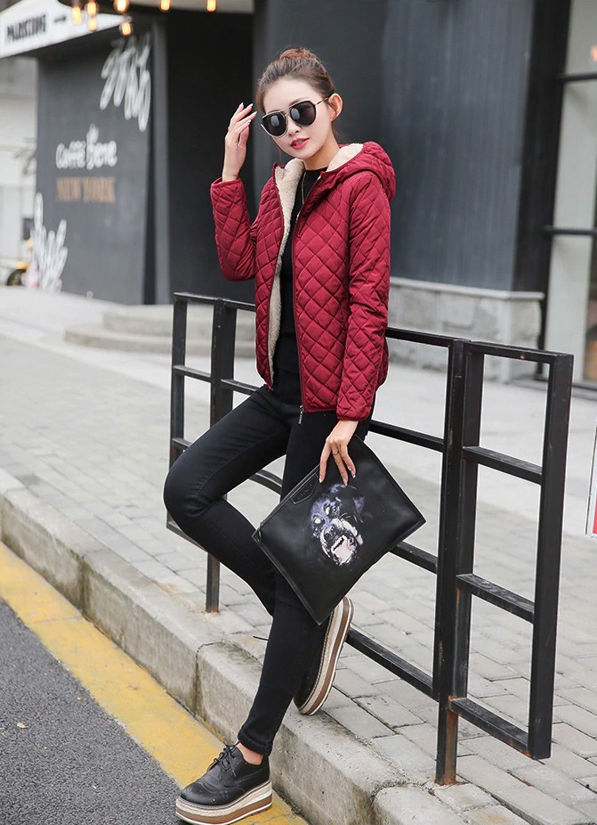Casaco feminino com um padrão estiloso, adequado para períodos de transição.